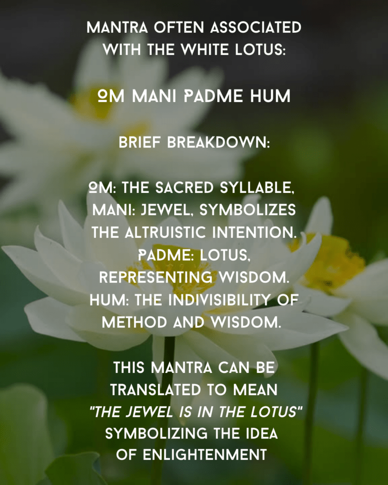 - Spiritual connection and serenity: The flower’s white colour signifies purity, innocence, and perfection, while its growth process symbolizes transformation and liberation from suffering