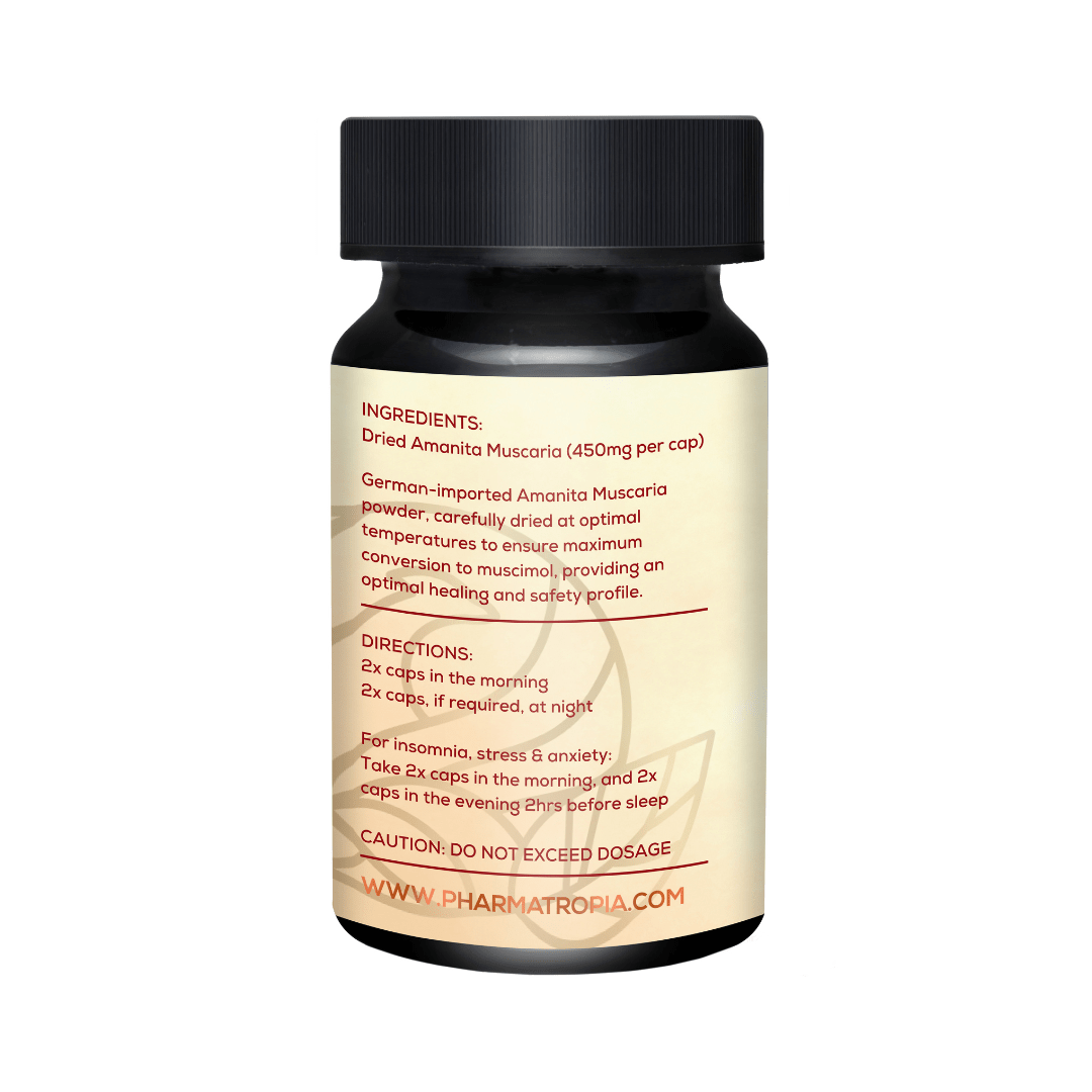German-imported Amanita Muscaria powder, carefully dried at optimal temperatures to ensure maximum conversion to muscimol, providing an optimal healing and safety profile.