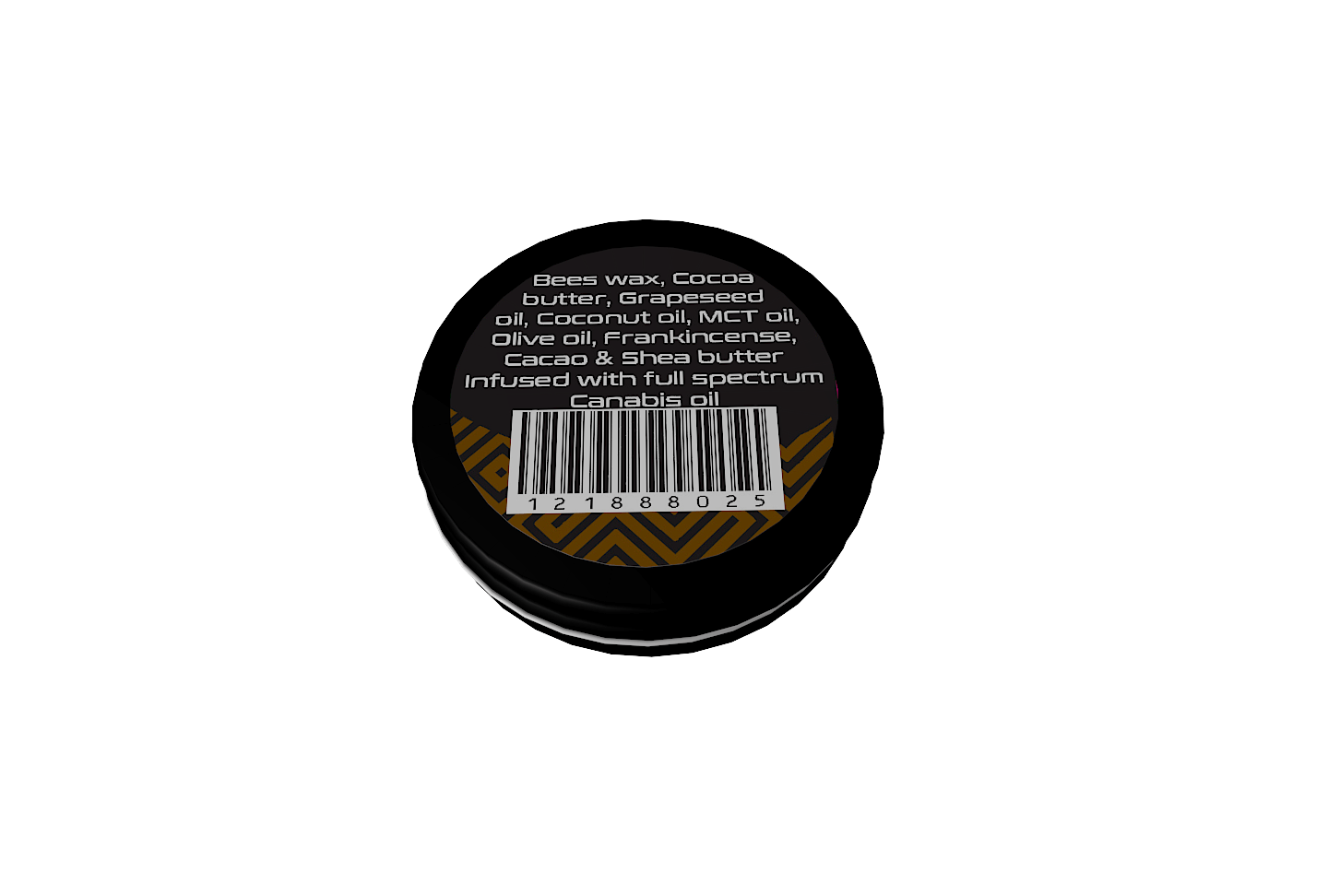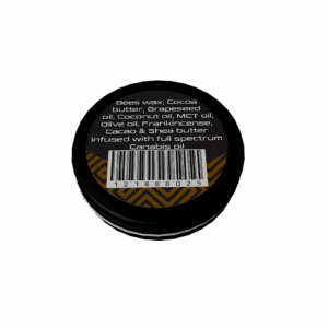 Ingredients: Beeswax, Cacao Butter, Shea Butter, Grapeseed Oil, Coconut Oil, MCT Oil, Olive Oil, Frankincense, Cacao, Infused with Full Spectrum Cannabis Oil