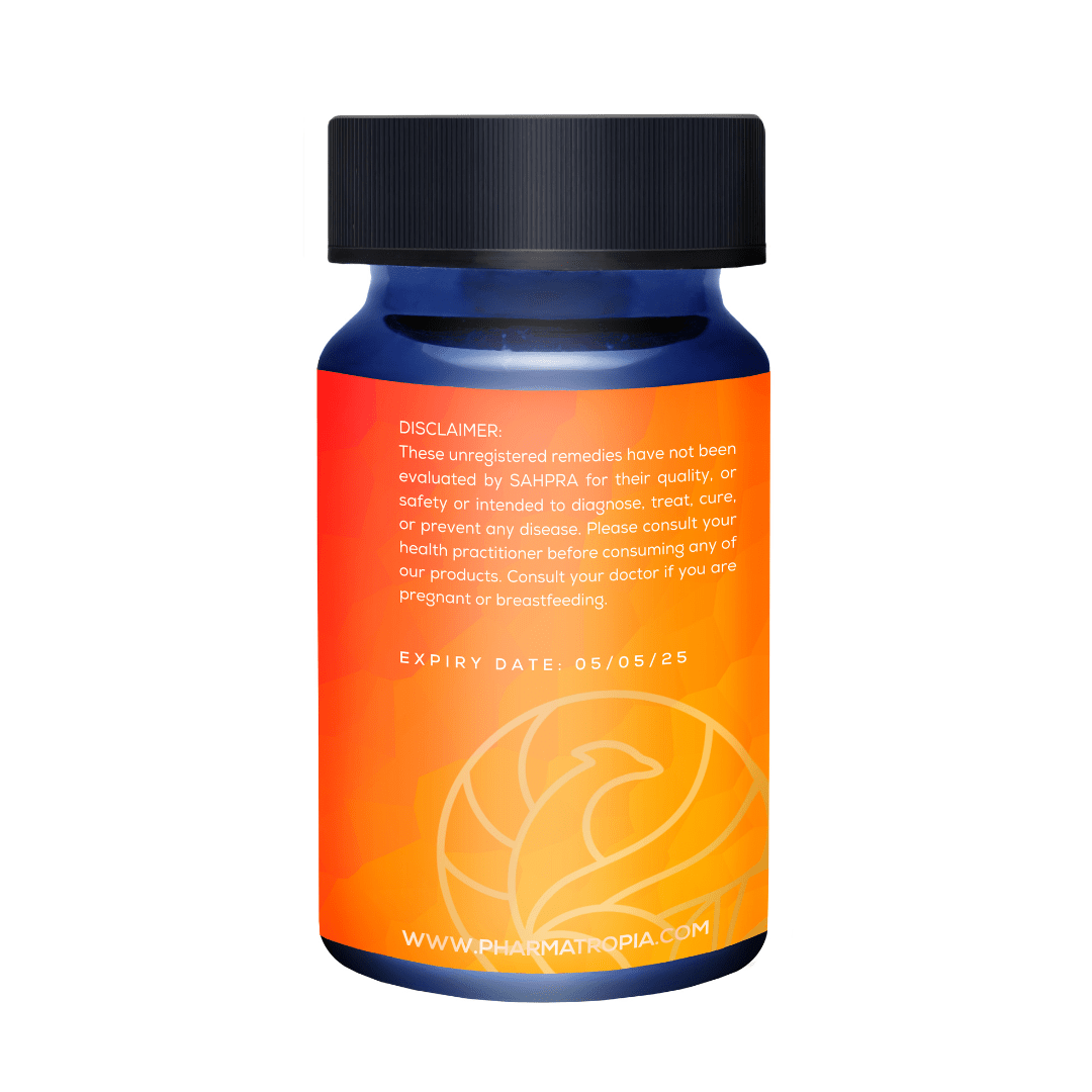 These unregistered remedies have not been evaluated by the SAHPRA for their quality, safety or intended use. This remedy is not intended to diagnose, treat, cure or prevent any disease. Please consult your health care practitioner before consuming any of our products. Consult your health care practitioner if you’re pregnant or breastfeeding.